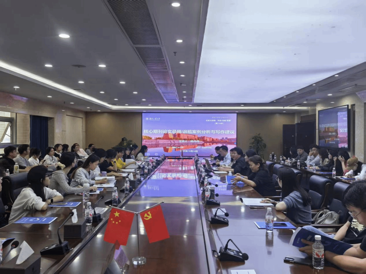 为进一步加强人文社科领域青年教师队伍建设,切实提升其核心期刊论文写作水平与投稿命中率,10月14日下午,由我校社会科学处主办的“科创未来”系列活动之名家大讲堂第116讲,在崇德楼401会议室举行。本次活动特邀武汉大学信息管理学院《出版科学》编辑部主任、编审杨丹丹博士担任主讲专家,作题为“核心期刊论文录用/退稿案例分析与写作建议”的专题报告。校内各人文学院青年教师齐聚一堂,聆听了此次讲座。